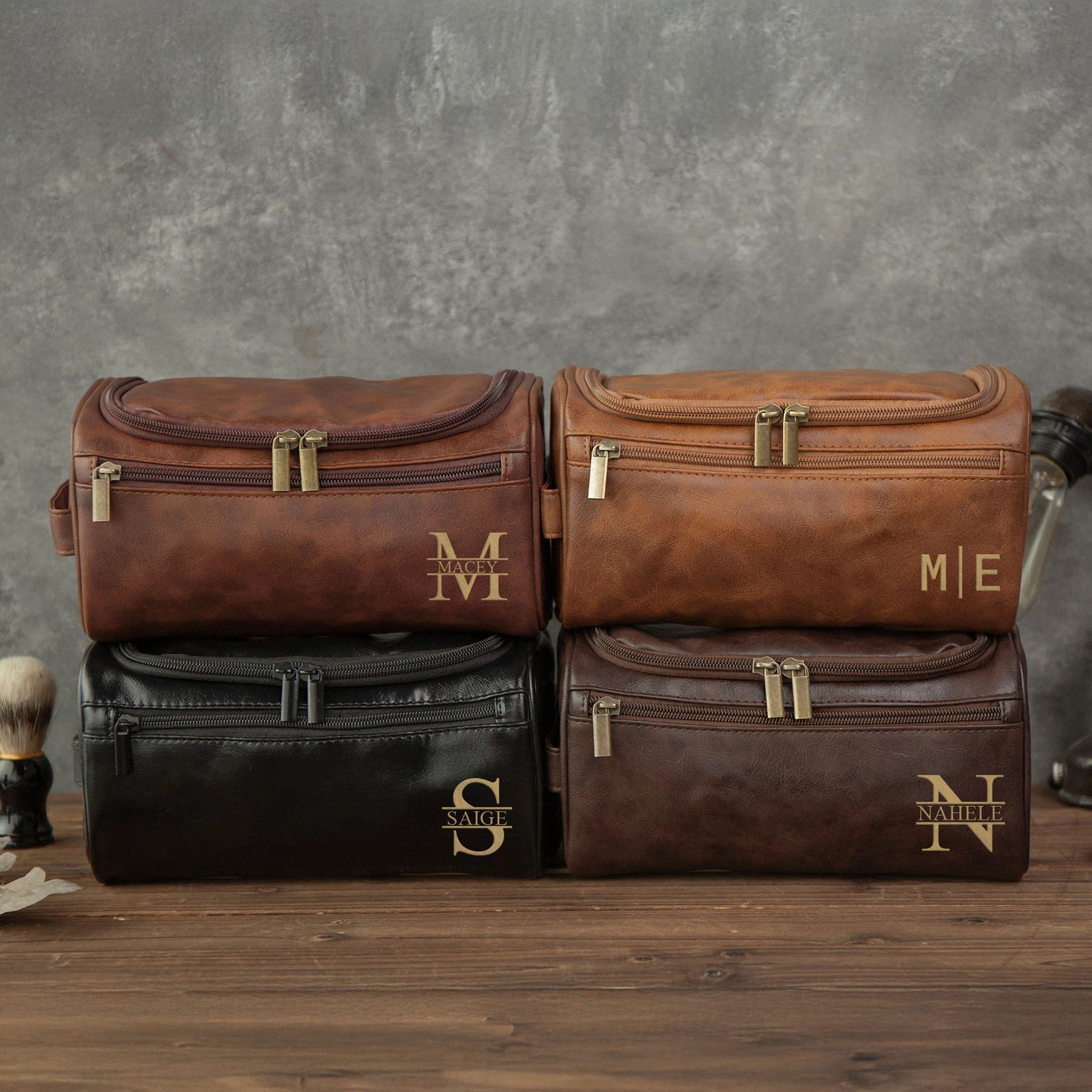 Personalized Men's Leather Toiletry Bag, Groomsmen Gifts, Engraved Dopp Kit, Gift for Him, Travel Toiletry Bag, Men's Leather Accessory